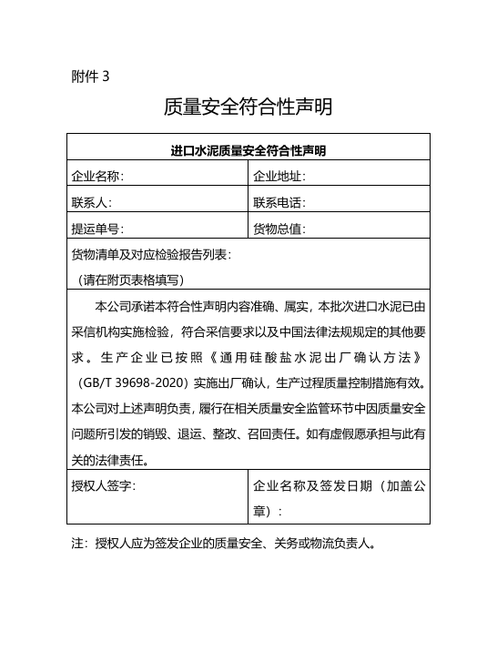 进口货物收货人或者其代理人申请检验结果采信的,应符合下列要求:能够确认水泥生产企业按照《通用硅酸盐水泥出厂确认方法》(GB/T 39698-2020)已实施有效质量控制措施;同时能够提供该水泥生产企业相同品种/强度等级水泥的近一年的季度质检记录;并承诺生产企业已按照《通用硅酸盐水泥出厂确认方法》(GB/T 39698-2020)实施出厂确认,生产过程质量控制措施有效。对于补充提交28d抗压/抗折强度检验报告前已销售的水泥,能够建立完善的质量安全追溯管理体系。