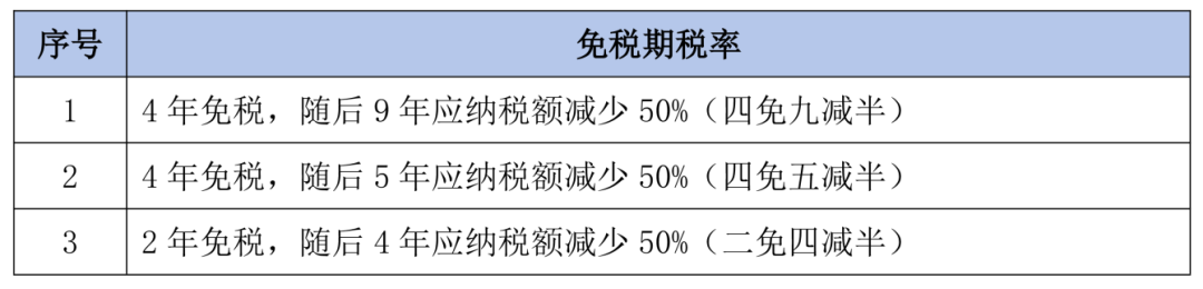 根据企业或投资项目的不同行业、领域、收入来源区域,投资项目的不同阶段(新投、扩大)期所得收入会享受不同免税期税率。