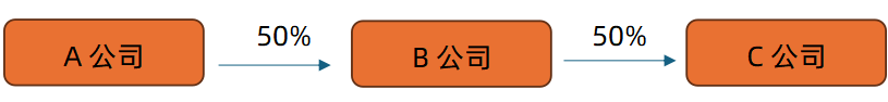 (2)间接持有: A公司为50%规则清单主体,持有未列名主体B公司50%股权,B公司持有C公司50%股权,则B公司和C公司都将被视为50%规则清单主体受相关限制: