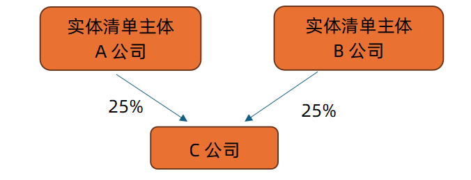 i. 如A公司和B公司均为实体清单主体,且均各自持有C公司25%股份,则C公司将视为实体清单主体受到有关限制: