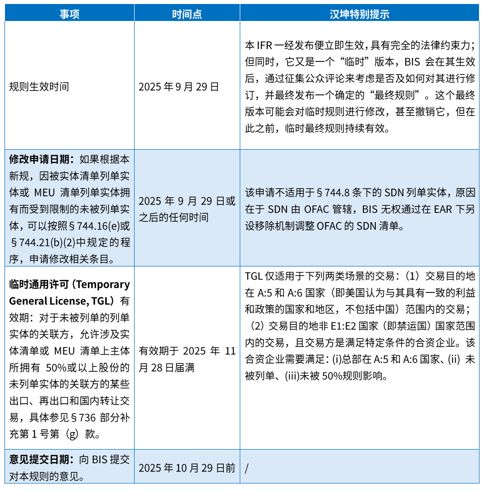 下表列示了BIS 50%新规的重要时间节点及特别提示。
