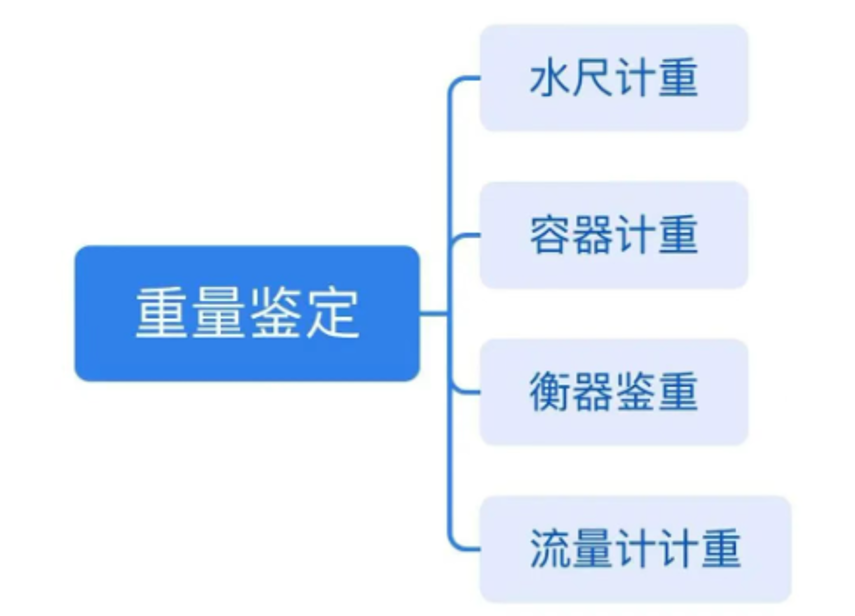 根据鉴定方式不同,重量鉴定可分为水尺计重、容器计重、衡器鉴重、流量计计重等。