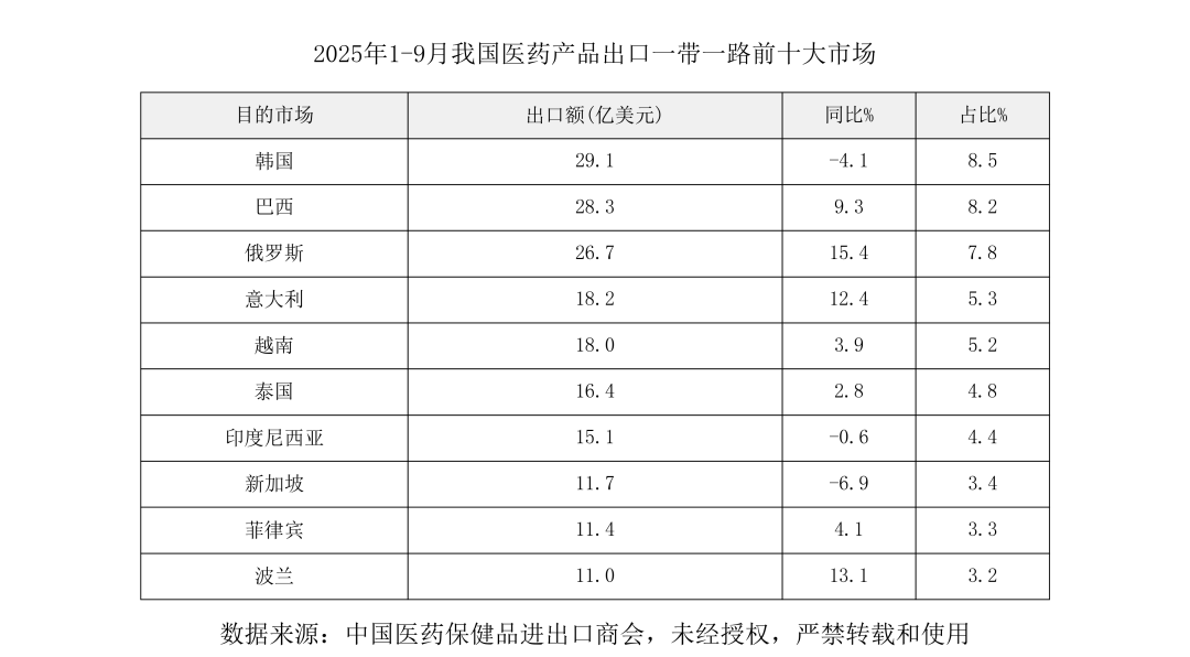 对俄罗斯市场出口额实现了超过18%的高速增长。这一方面源于地缘政治变化后当地市场格局的重塑,为中国企业提供了替代欧洲产品的机遇;另一方面也表明中国医药产品在质量、价格和供应稳定性上能够满足俄罗斯市场的需求。医疗器械、西药原料等是主要的增长产品。
