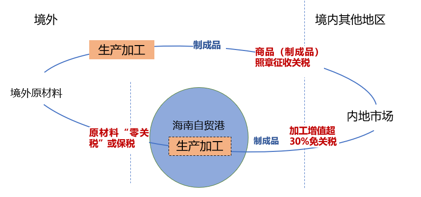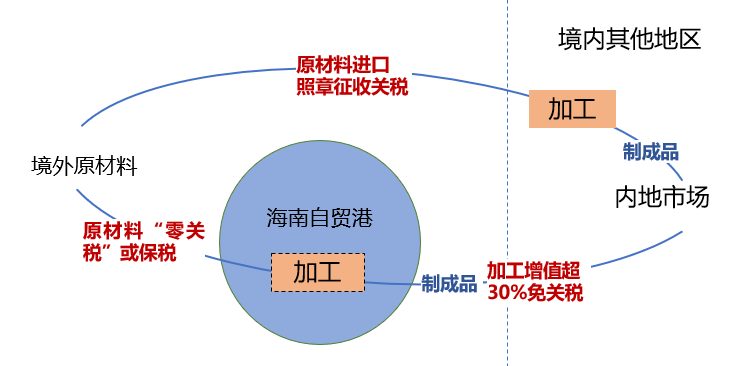 (一)场景一:将生产环节从内地移到海南,对进口原材料加工后返销回内地市场。