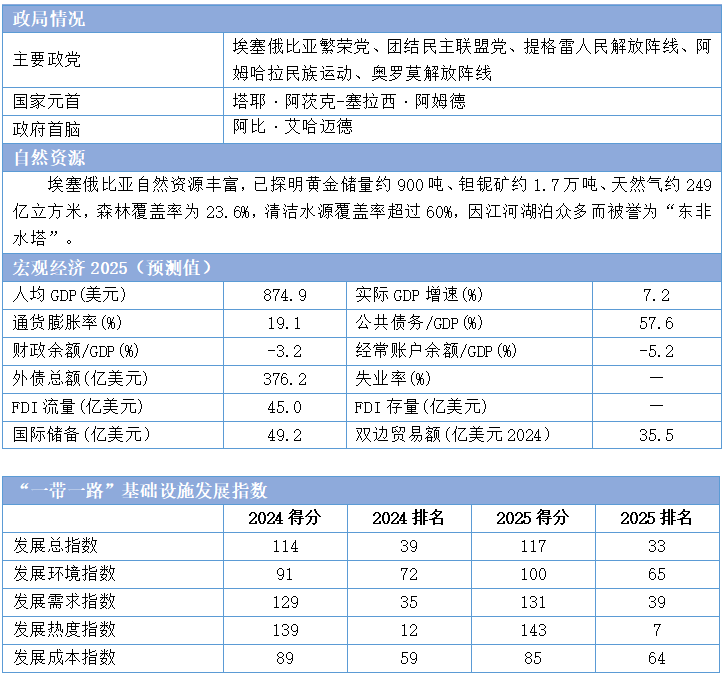 - 政治环境方面,埃塞俄比亚政局复杂,总理阿比·艾哈迈德虽有望继续执政,但提格雷和平协议执行脆弱,阿姆哈拉和奥罗米亚武装冲突与社会动荡频发,叠加高通胀引发的社会不满情绪,政治风险居高不下。