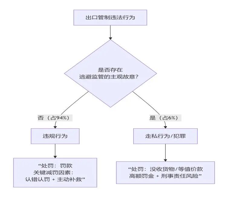 为什么说这样处理务实呢?站到企业立场上想一想就可以理解了,如果照搬《出口管制法》违法经营额5-10倍的罚款,对于绝大多数因过失(如归类错误)而导致违规的企业来说,处罚过于严厉,如果真的非要落地执行,几乎是毁灭性的。