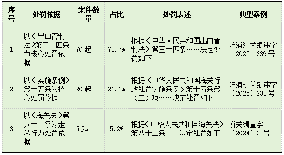 1、超70%数量的案件将《出口管制法》作为海关领域出口管制违法行为的核心处罚依据,这与预判与分析一致。