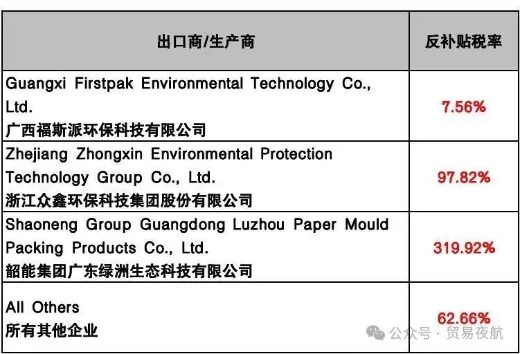 根据美国国际贸易委员会(ITC)的投票结果,美国商务部将对来自中国和越南的热成型模压纤维产品(Thermoformed Molded Fiber Products)发布最终的反倾销税和反补贴税令,该命令将于2026年1月23日正式发布。