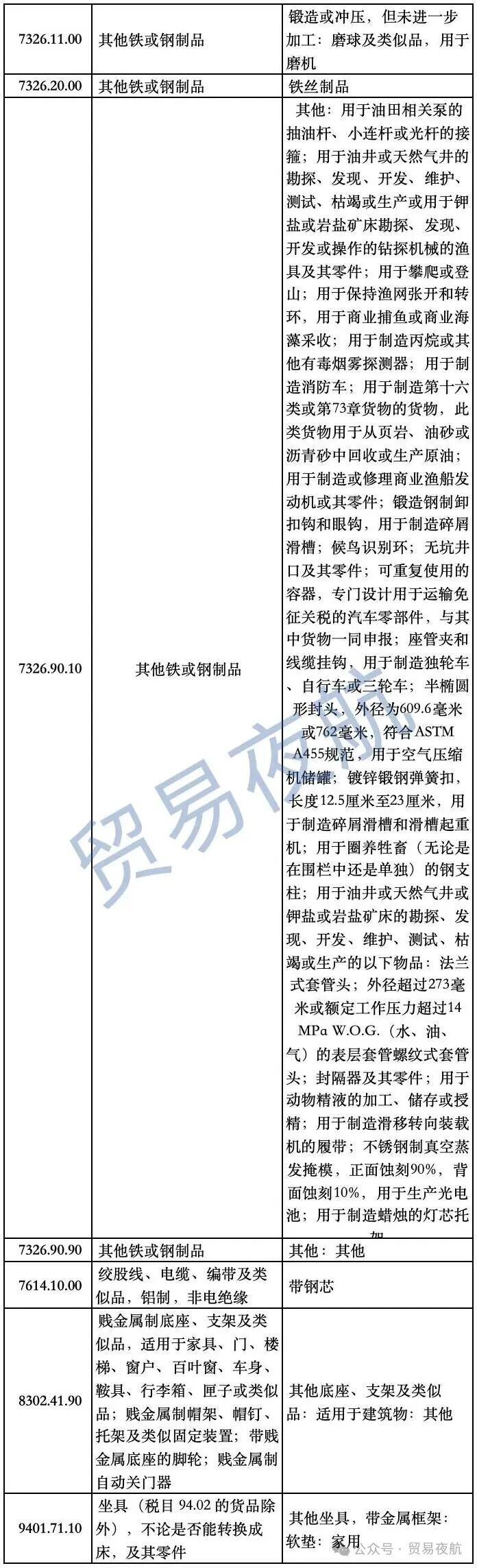 - 不适用:受现有附加税订单覆盖的货物(如中国/美国钢铁附加税订单)、休闲货物(casual goods)、第98章货物、在途货物。