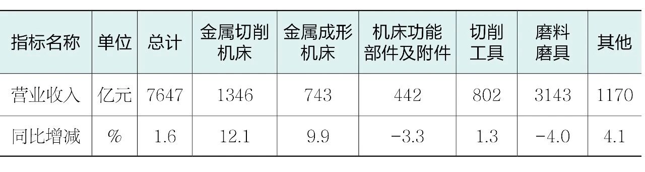 机床工具行业及主要分行业的营业收入情况,详见表1。