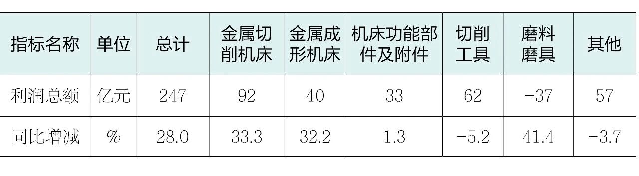 表2 2025年1-9月机床工具行业及主要分行业的利润总额情况