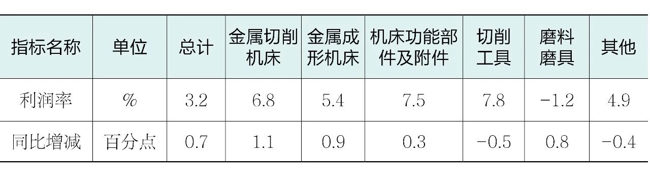 表3 2025年1-9月机床工具行业及主要分行业的利润率情况