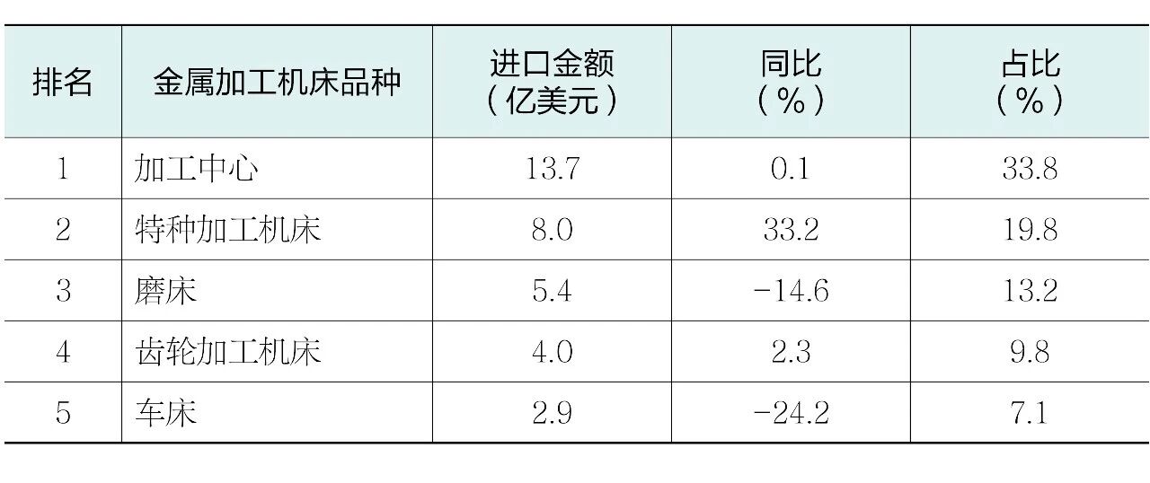 2025年1-9月,进口前五位的金属加工机床品种及其进口金额,详见表8。