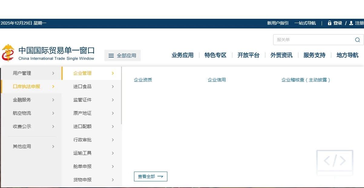 企业通过“中国国际贸易单一窗口”,选择“业务应用”项下“企业资质”进入境外注册管理”,选择“境外注册申请”,按要求填写相关信息、上传有关资料。
