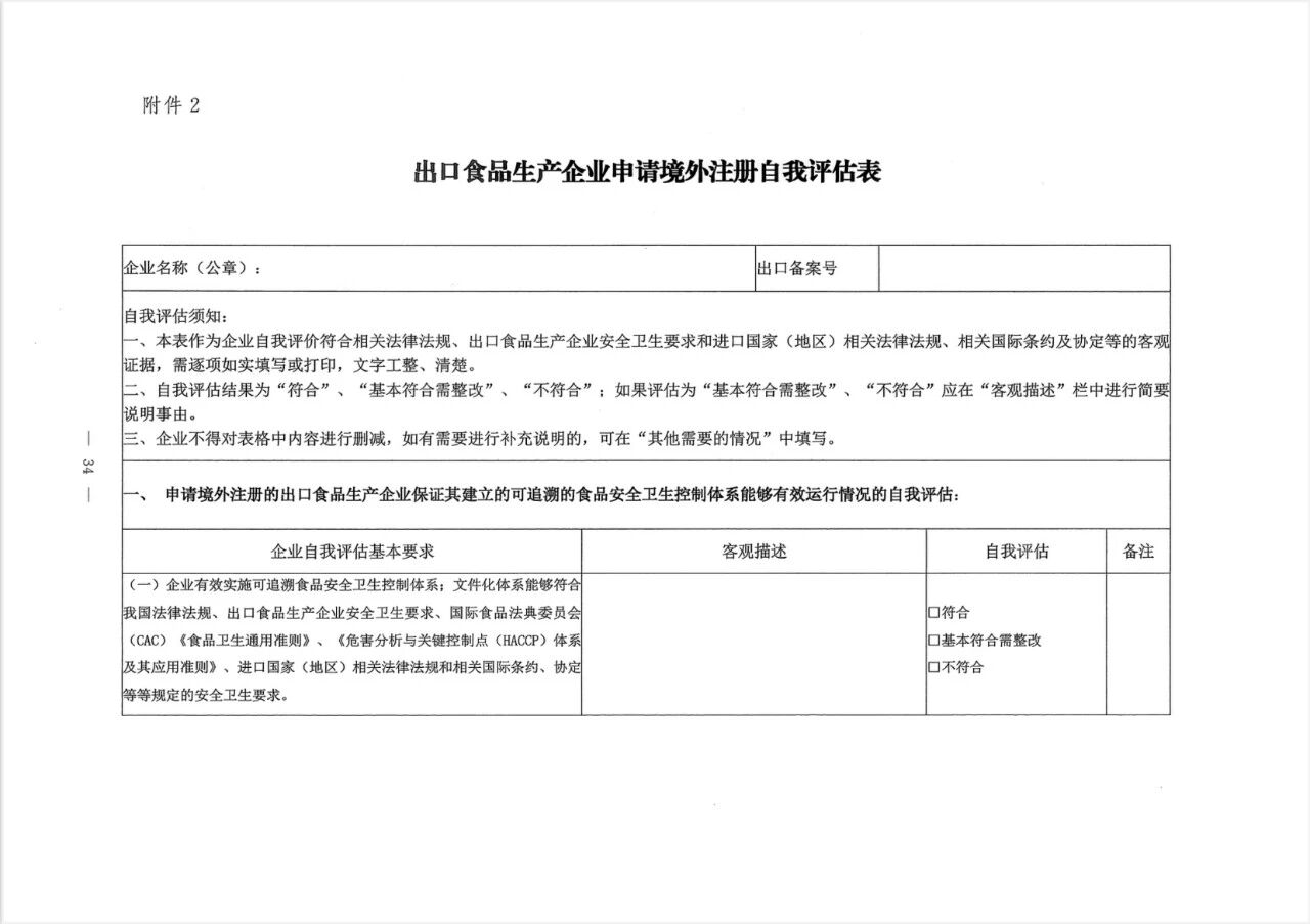 提示:申请书、自我评估表可在海关总署2021年第87号公告《出口食品生产企业申请境外注册管理办法》附件中下载。