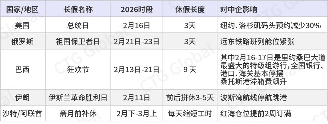 2026年春节将迎来“史上最长”9天连休(2月15日至23日),与此同时,全球10余个国家将在春节前后同步进入各自的“长假模式”。我们梳理了2026年春节期间,各国的假期日历,助您保障全球业务在假期高峰中平稳航行。