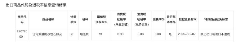 实务操作中,“取消退(免)税货物”可能对应视同内销或免税两种税务处理方式,出口企业可通过国际贸易单一窗口、税务局网站、电子税务局查询出口货物的具体情况,视同内销征税货物的特殊商品标识为“1”或“禁止出口或出口不退税”,免税货物的特殊商品标识为“2”或“免税”。如下图所示: