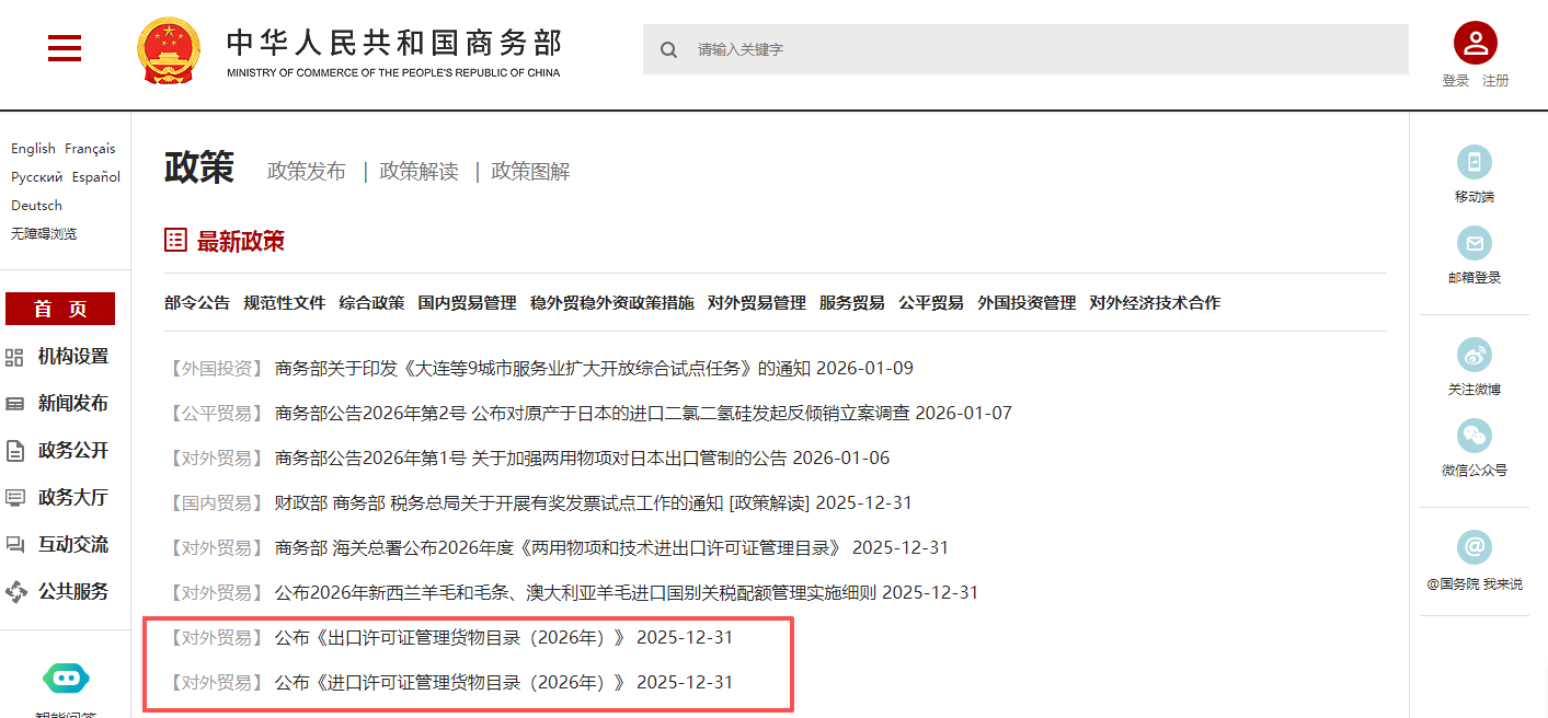 本文主要涉及《进口许可证管理货物目录(2026年)》《出口许可证管理货物目录(2026年)》《自动进口许可管理货物目录(2026年)》。