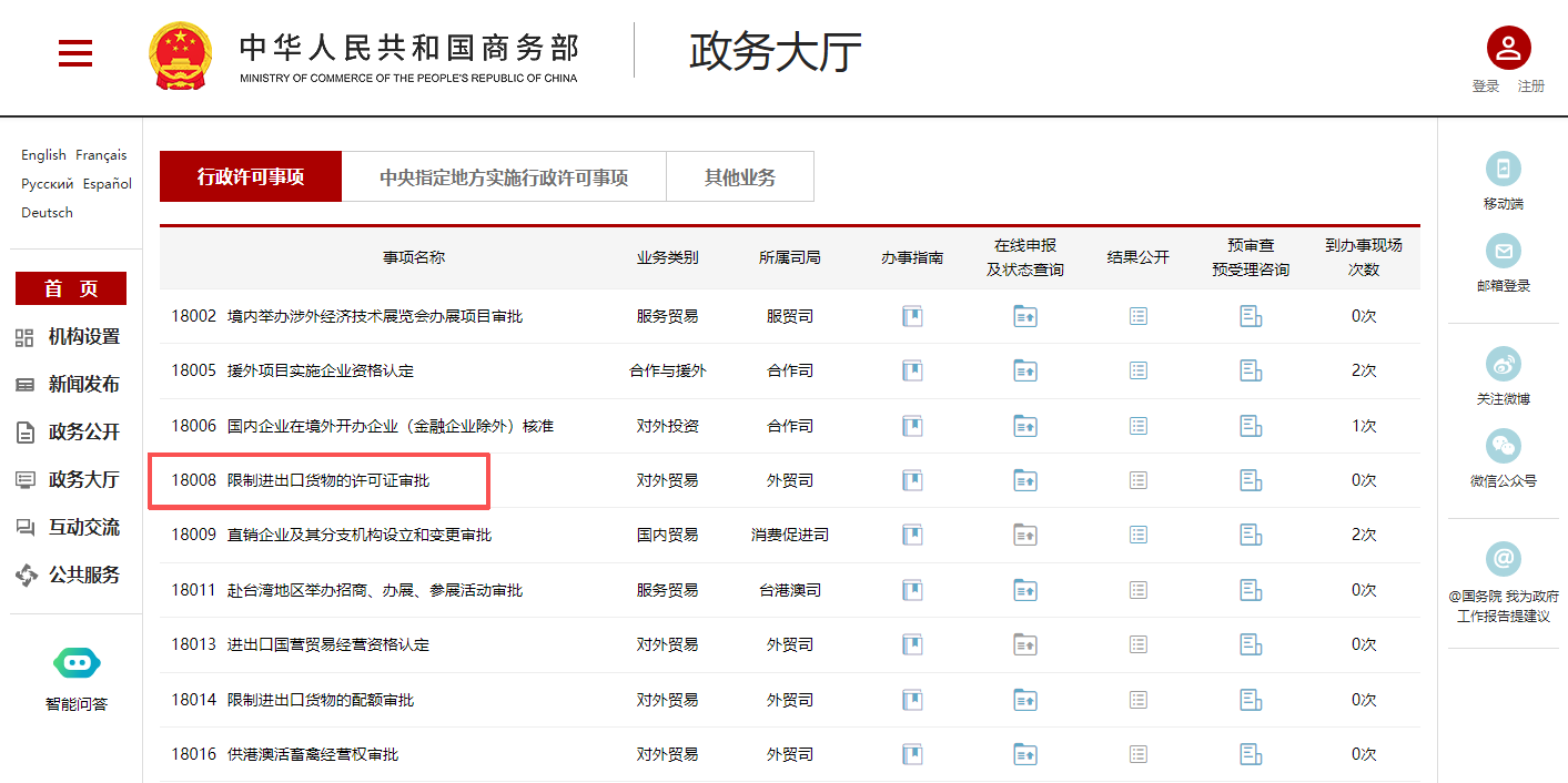 商务部网站:http://egov.mofcom.gov.cn/list1.shtml?menu=0