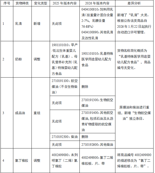 (四)注意相关政策生效时间,如《自动进口许可管理货物目录(2026年)》中的乳清类商品实际自2026年1月22日起执行自动进口许可管理。