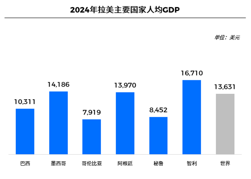 从经济层面看,拉美国家整体处于中等收入区间。世界银行数据显示,拉美主要国家人均GDP多集中在8,000–15,000美元区间,具备一定购买力,但消费决策高度理性。