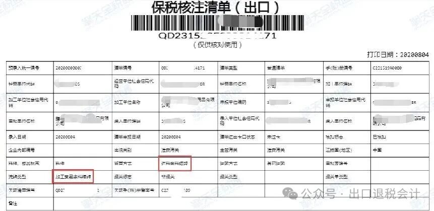 手(账)册核销信息、核销报关单明细、进料加工免抵退明细数据