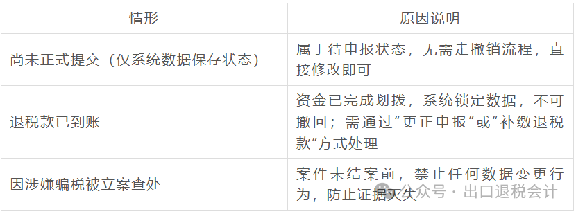 根据现行政策规定,只有满足以下两类情形的企业,方可申请撤回已提交的出口退(免)税申报数据: