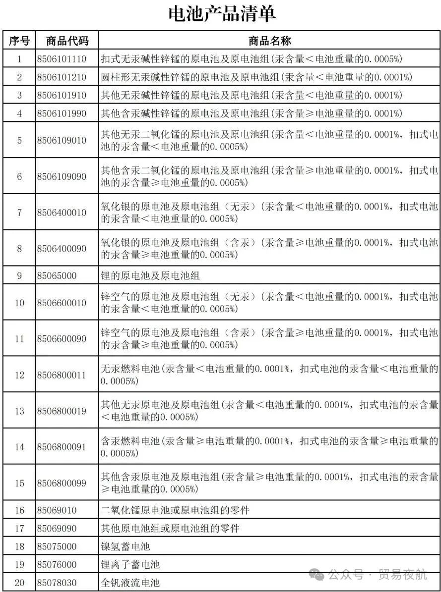 - 2027年1月1日起,取消电池产品增值税出口退税。