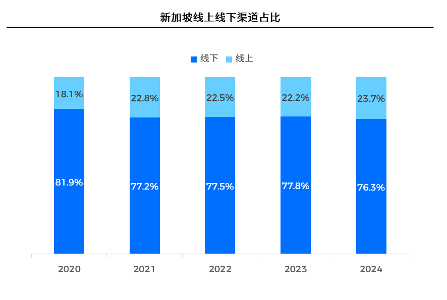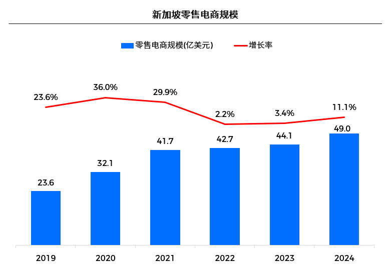 值得关注的是,2024 年新加坡电商仍实现 11% 的年增长率,在高基数背景下保持稳健扩张,说明电商在本地零售体系中仍处于结构性增长轨道。