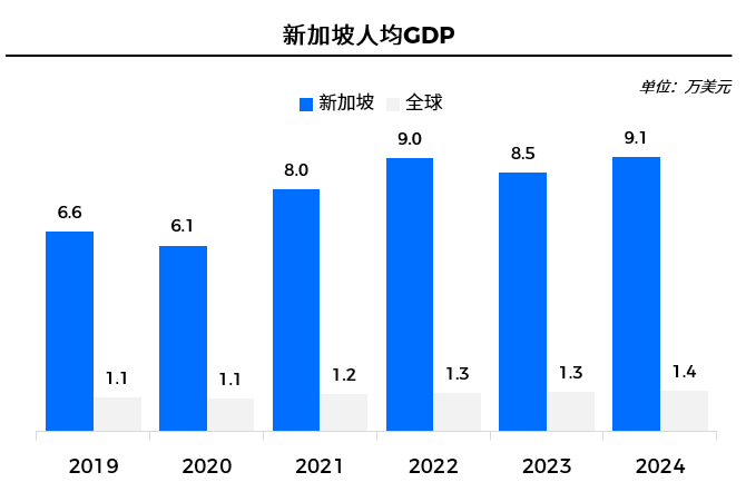 新加坡是东南亚地区经济最发达的国家,其收入与消费水平均处于国际一线行列。根据世界银行数据,2024年新加坡国内生产总值约为29,136亿美元,约为全球平均水平的4倍。与此同时,其人均GDP高达9.1万美元,远超全球约1.4万美元的平均水平,展现出较强的经济实力与居民财富积累。
