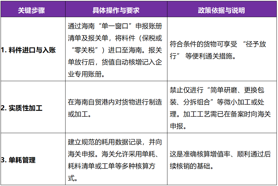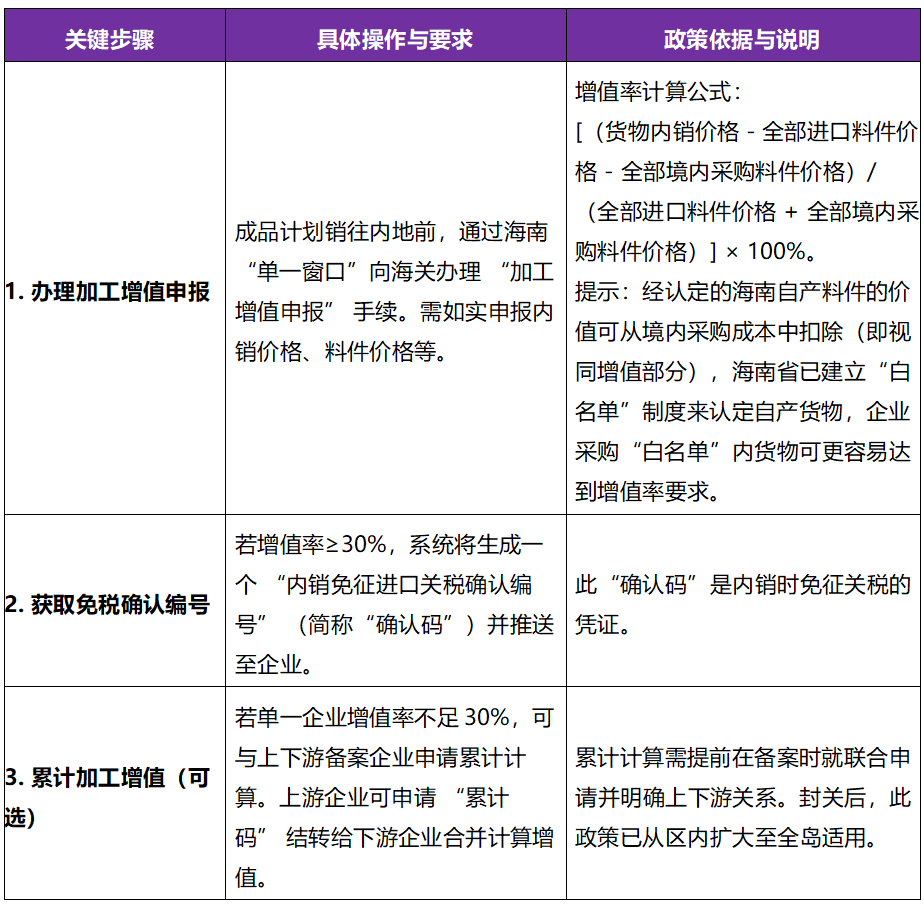 - 海南自产货物:经认定的海南自由贸易港自产货物价值可从境内采购料件价格中扣除。这是封关后的重大优化,使企业更容易达到30%的增值率要求。
