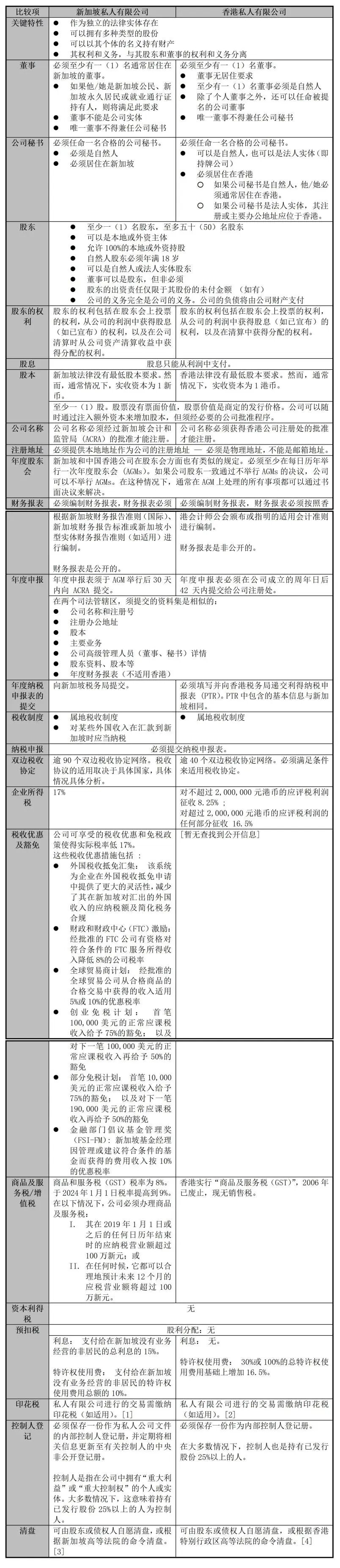在中国企业对外投资选择持股平台时,常会就新加坡与香港设立SPV的方案进行比对考量,以下为两地设立私人有限公司的不同要求及特征: