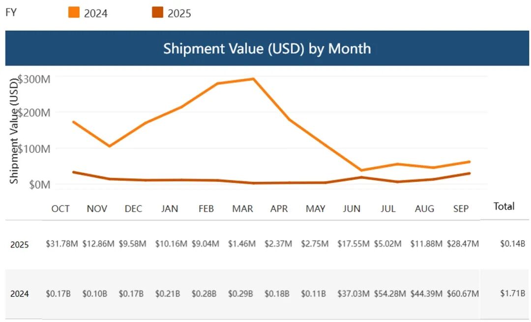 此外,《维吾尔强迫劳动预防法案》(UFLPA)仍是2025年美国执法的重要法律依据。根据美国海关与边境保护局(CBP)公布的数据,2025财年CBP依据UFLPA共查扣货物7,186起,其中5,943起被拒绝入境,592起最终获释,涉案货物总价值约1.4亿美元[2]。与上一财年相比,被查扣货物的总体价值明显下降,但执法重点出现结构性变化——由此前以电子产品为主,转向汽车及航空航天相关产品,显示UFLPA执法已更加紧密地服务于美国当前的产业安全与供应链重构目标。