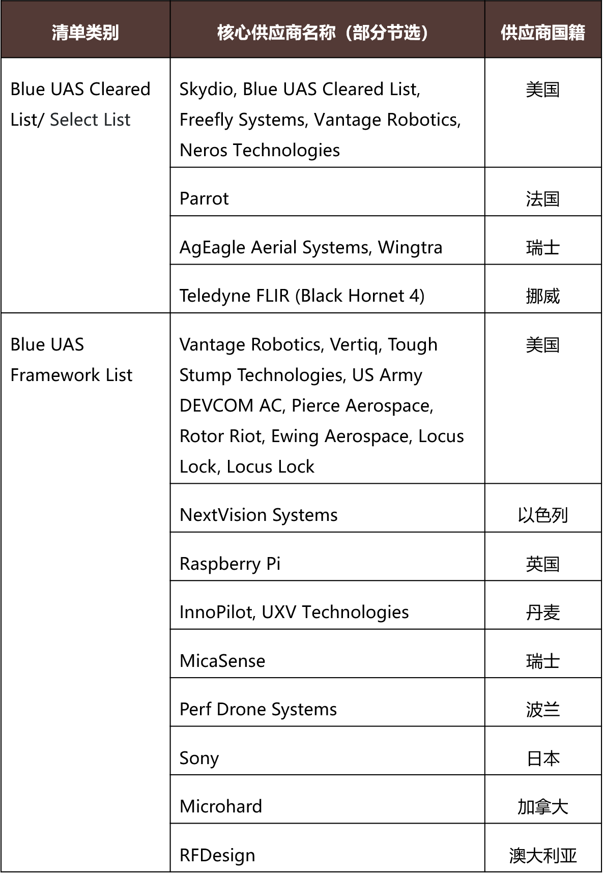 美国国防部明确认定,凡被列入其下属机构DCMA管理的“蓝标清单”的无人机及其关键组件,目前不构成对美国国家安全或公民安全的“不可接受风险”。