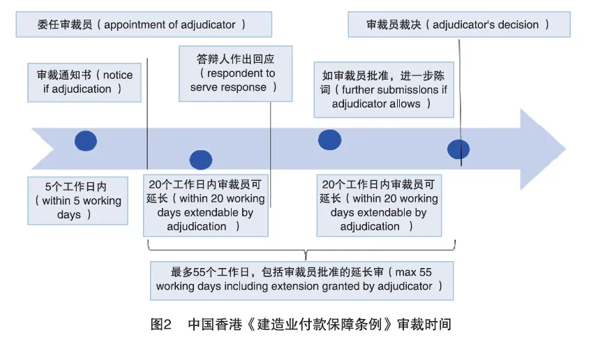 (3)付款纠纷审裁在经过合约下的索偿处理程序后,任何不满意的一方都可以在付款争议发生之日起28天内把付款争议提交审裁。审裁程序有严格的时间限制。在审裁员被任命后的55个工作日内,审裁员应就付款争议作出审裁裁决。