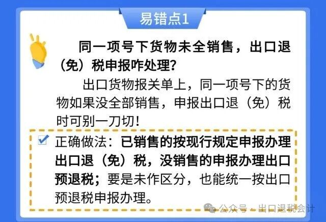 4、对未实现销售的货物和已实现销售的货物进行区分,分别进行出口预退税申报和出口退(免)税申报;未作区分的,全部视为未实现销售,统一申报出口预退税。外贸企业应当使用单独的关联号申报出口预退税。