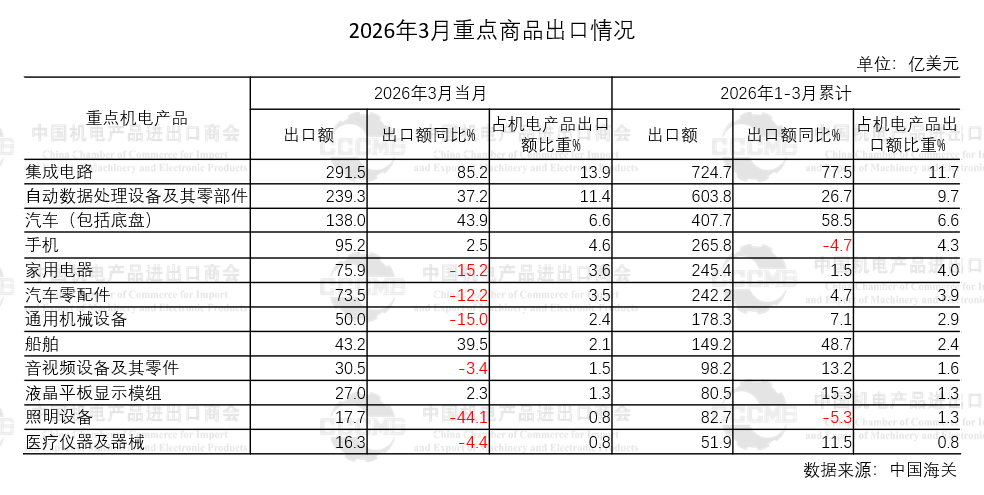 来源:中国机电产品进出口商会