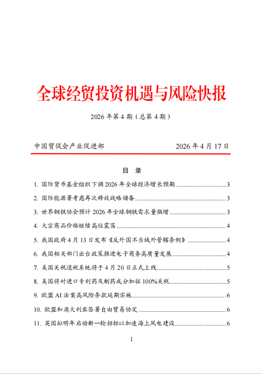 《全球经贸投资机遇与风险快报》(2026年第4期,总第4期)