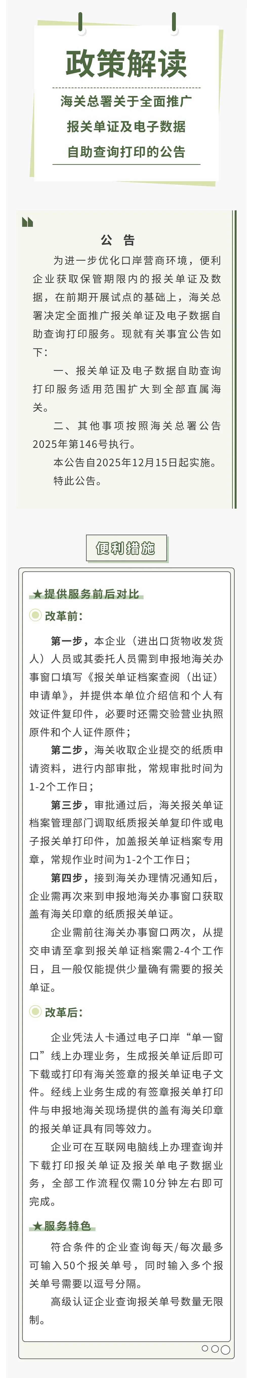 政策解读:海关总署关于全面推广报关单证及电子数据自助查询的公告