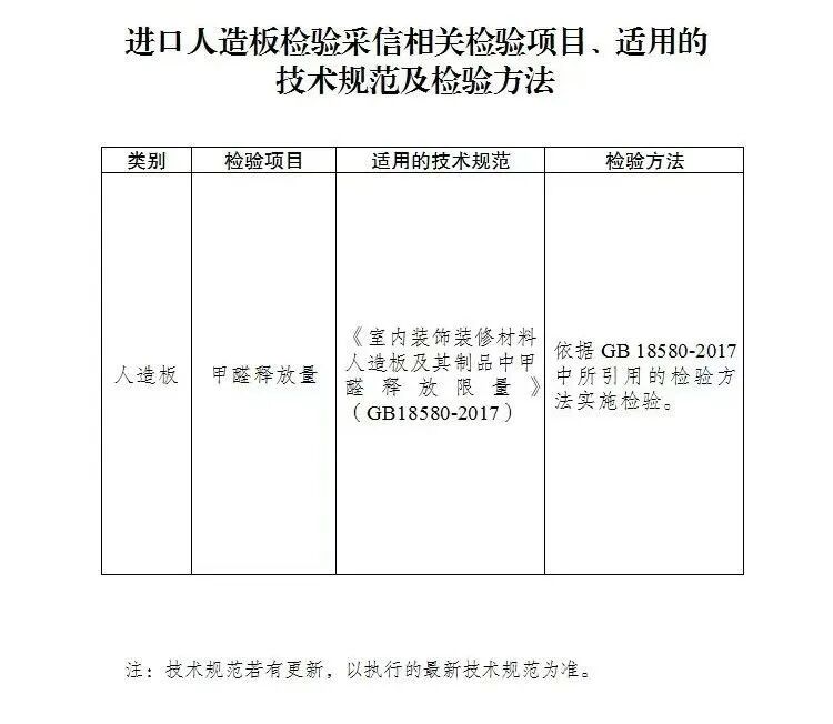 采信机构应当按照《进口人造板检验采信相关检验项目、适用的技术规范及检验方法》要求对进口人造板实施检验。