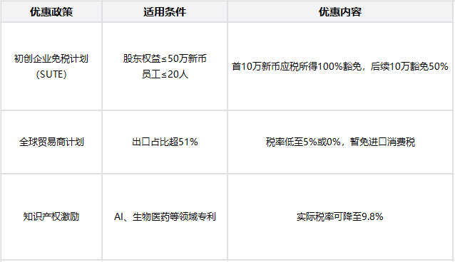 除RIC外,新加坡还推出针对性优惠政策,帮助企业平衡合规成本: